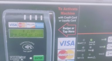 There are different prices, for 10 pounds, starts in $2.25, the washers and .25 ctvs for 5 min dryer. You can use coin or card.